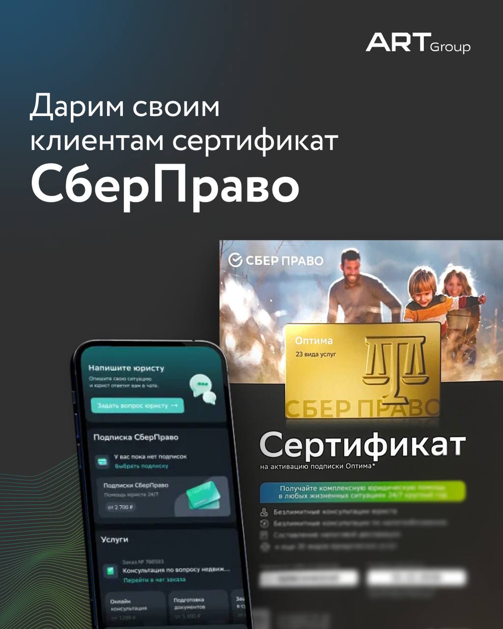 ГК «АРТ ГРУПП» дарит своим клиентам сертификат СБЕРПРАВО.